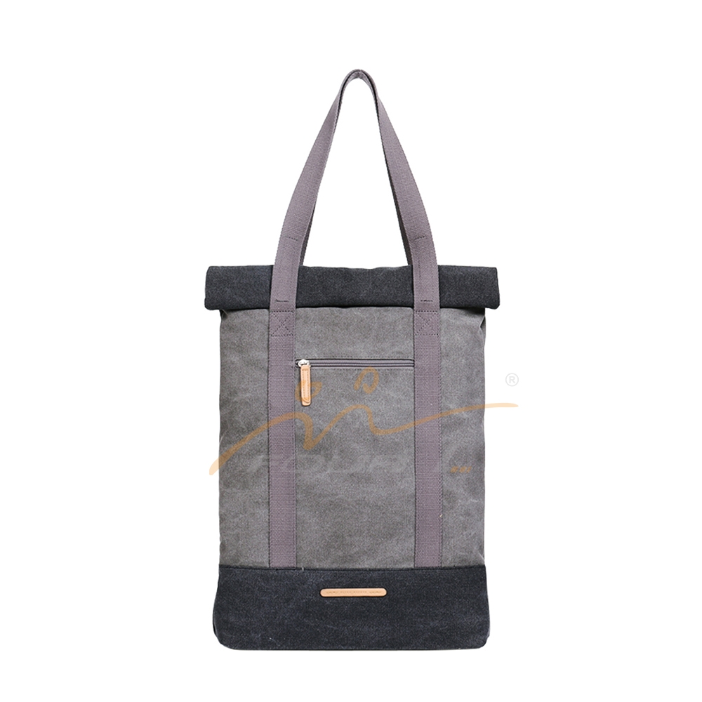 What an adorable tote! Waxed canvas and webbing handle ensures durability, while roll-up closure allows you to adjust the capacity according to the items inside. An exterior zippered pocket on the outside offers extra room for your gadgets like keys, coins, and cards.
